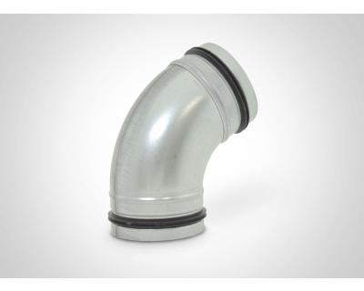 Lüftungsbogen DN 160 mm, 60 Grad (Fitting) für Wickelfalzrohre oder Lüftungsrohre mit Doppellippendichtungen an den Enden zur Abdichtung der Rohrverbindungen. Durch die Verwendung dieser Dichtung wird kein zusätzliches Dichtungsband benötigt.