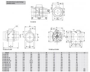 Für Installations- und Wartungsarbeitenlassen sich die Motoreinheiten der Lüfterohne Demontage der Rohrleitungen schnellund problemlos entfernen.Gehäuse Komplett mit Montage-Konsole Ansaug- und Ausblasstutzen entsprechenden gängigen Rohrdurchmessern NW 100bis NW 400 Modelle 160 - 800 aus schlagfestemABS-Kunststoff Modelle 1000 6000 aus Stahlblech mitEpoxid-Polyester-Beschichtung, weißDrehzahl- min/1--------------------------------1400Leistungsaufnahme-W----------------------------665Stromaufnahme-----A----------------------------2,97Volumenstrom-----m³/h-------------------------5500Max.zulässige Fördermittel-Temp.-°C----------40Schalldruckpegel*-db(A)------------------------44Wechselstrom 230V, 50 Hz,Kondensatormotor, 4 polig